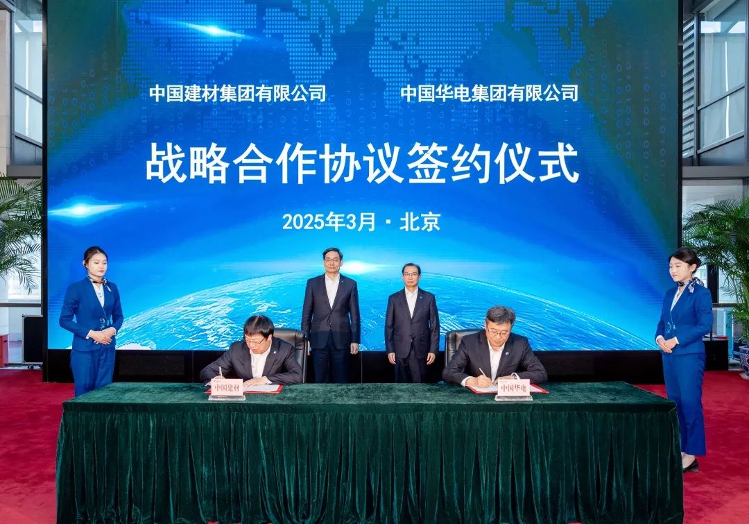 3月21日,中国建材与中国华电在京签订战略合作协议。中国建材集团党委书记、董事长,中国建材股份党委书记、董事长周育先,中国华电董事长、党组书记江毅出席活动并见证签约。中国建材集团党委常委、副总经理王于猛,中国华电副总经理、党组成员蒋方帅代表双方签署战略合作协议。